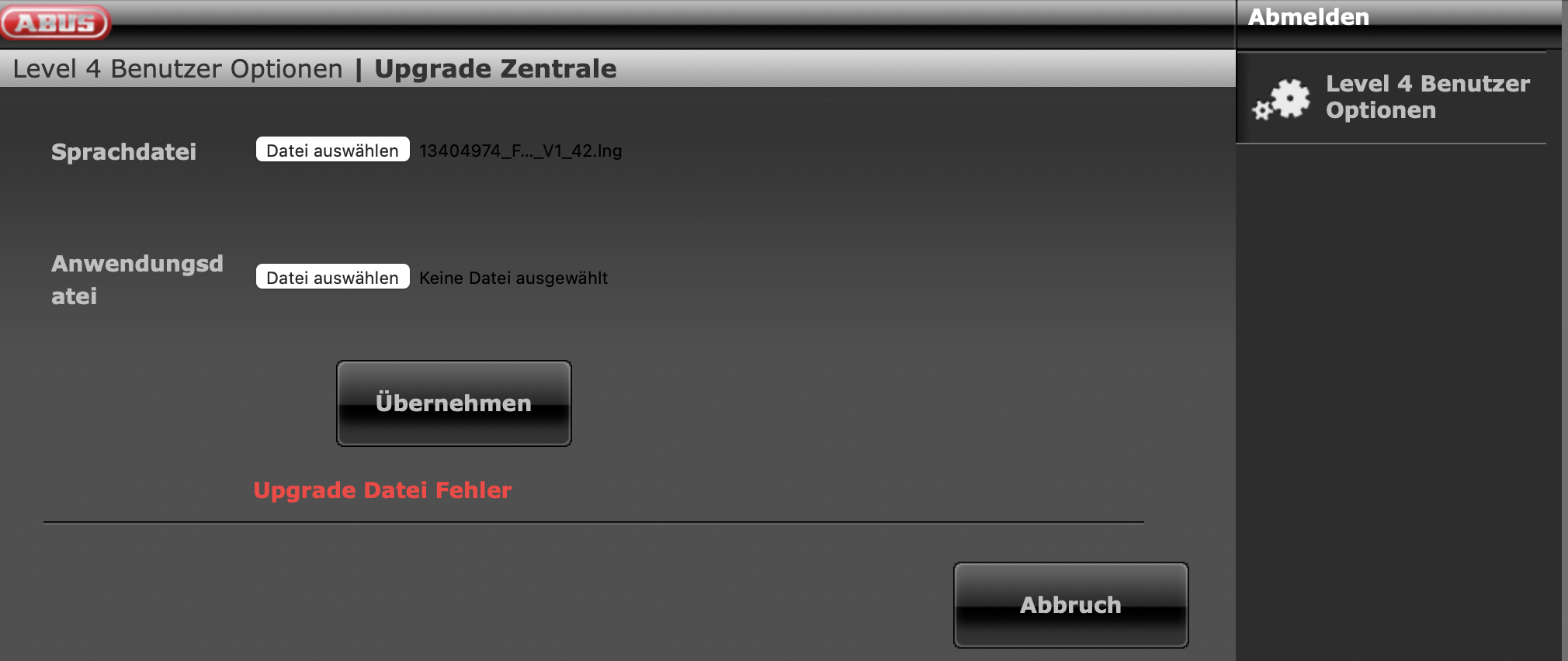 In diesem Fall: Löschen Sie die Alarmzentrale aus dem anderen Konto oder lassen Sie dies über den ABUS Support durchführen. - Es ist eine veraltete Firmware auf der Alarmzentrale installiert.