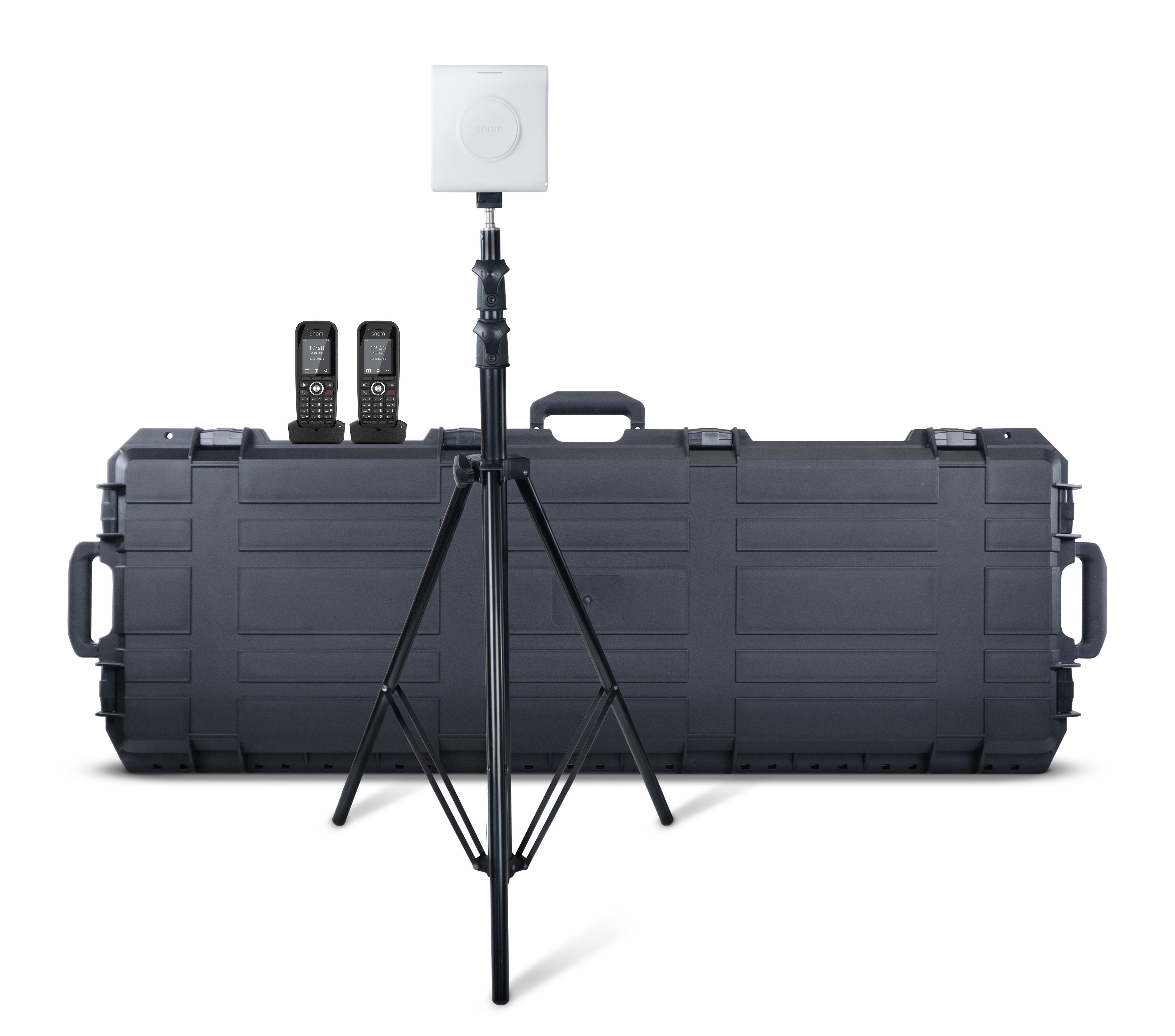 Das Snom Measuring Kit unterstützt die Planung und Installation eines Snom DECT-Multizellensystems. Es enthält eine Messbasisstation Snom M900, zwei Snom M30 Handsets, ein Stativ und einen Koffer für den Transport der Geräte. Das Snom Measuring Kit hilft Technikern bei der genauen Bestimmung der Umgebungsbedingungen, die für das DECT-Netzwerk geplant werden müssen.